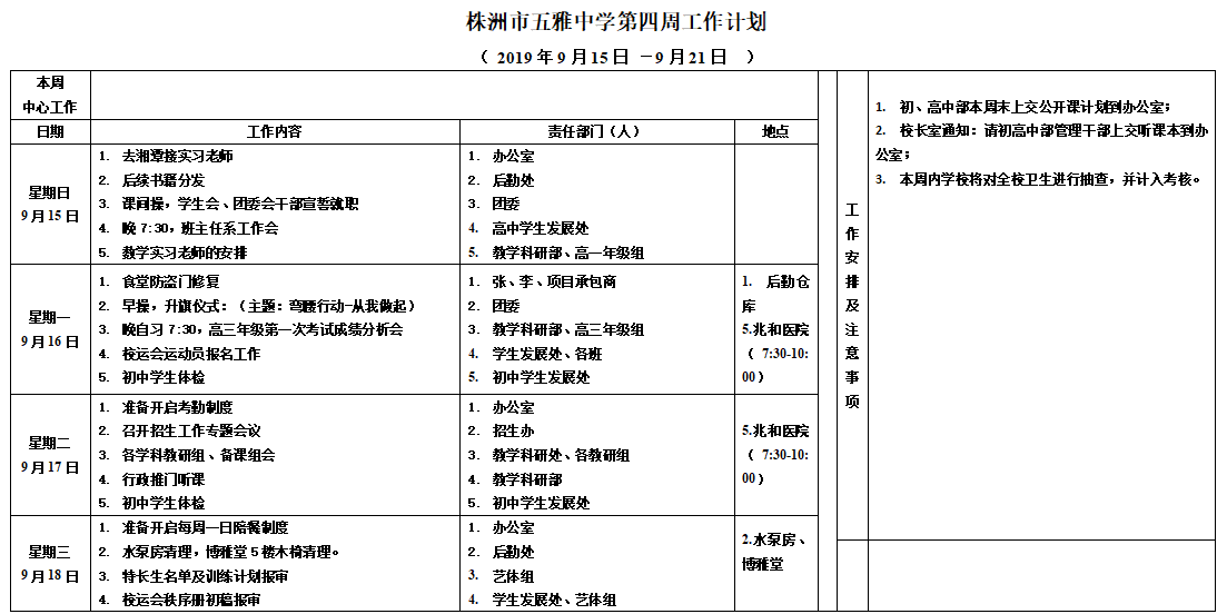 株洲市五雅中學(xué)第四周工作計(jì)劃